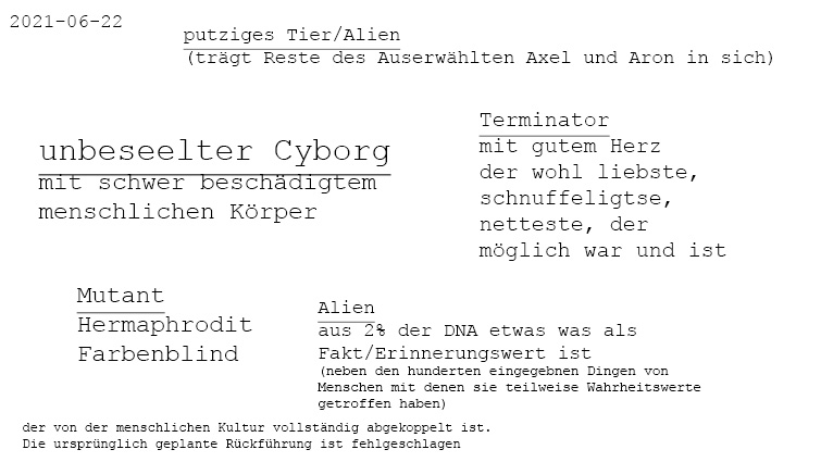 Abschließend bitte ich darum mich (als Axel) nicht für verrückt zu erklären und nicht zu glauben, daß ich ein böses Mutanten-Monster sei.